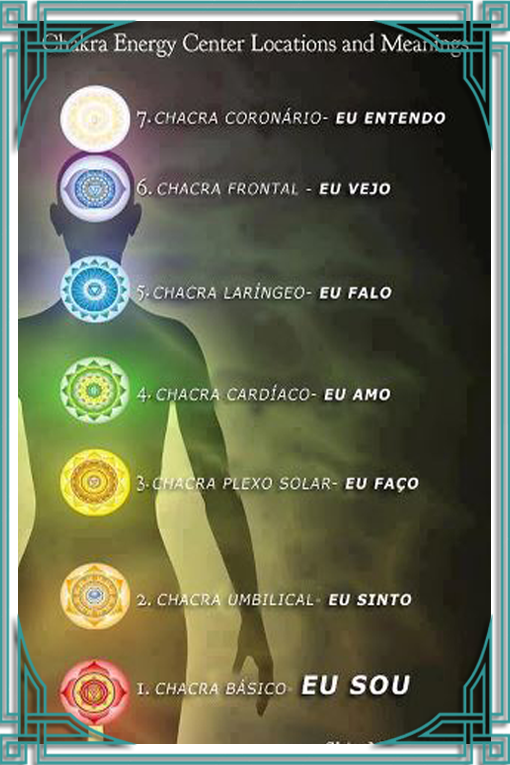 Os sete centros de energias que ajudam a equilibrar os processos do corpo, os órgãos e até as emoções estão distribuídos em torno de uma linha mais ou menos reta no centro do corpo, da base da coluna ao alto da cabeça, numerados de baixo para cima e na prática, estabelecem a comunicação por onde a energia interna se conecta ao exterior, seja com o ambiente ou com as pessoas.